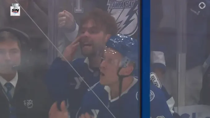 During the exciting first period, which has had a lot of tough plays, there’s a funny moment where Lightning players Corey Perry and Brandon Hagel are going wild against the Habs from the penalty box.