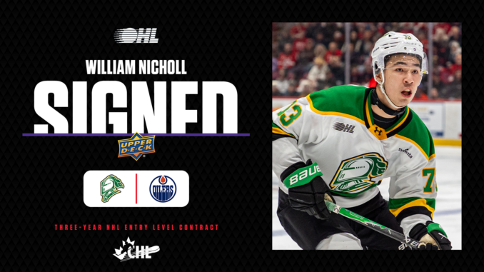 London Knights player William Nicholl has agreed to a three-year beginner contract with the Edmonton Oilers.